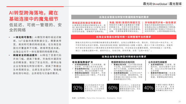 在此背景下,智能基礎設施——尤其是高速、可靠、安全且易于管理的全球網絡,正成為企業能否成功將AI能力部署海外、實現全場景落地的關鍵支撐。報告通過案例說明,融合AI、云與安全的智能連接方案,有效幫助企業打通端到端的數字化閉環,在復雜多變的國際環境中保持業務敏捷與韌性。