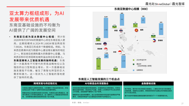 東南亞一方面具有不可替代的貿易戰略地位以及強勁的出口型制造業增長,另一方面基礎設施發展極不均衡,催生了數智化轉型的巨大需求和潛力,這一現狀為人工智能的落地提供了獨特的機遇。