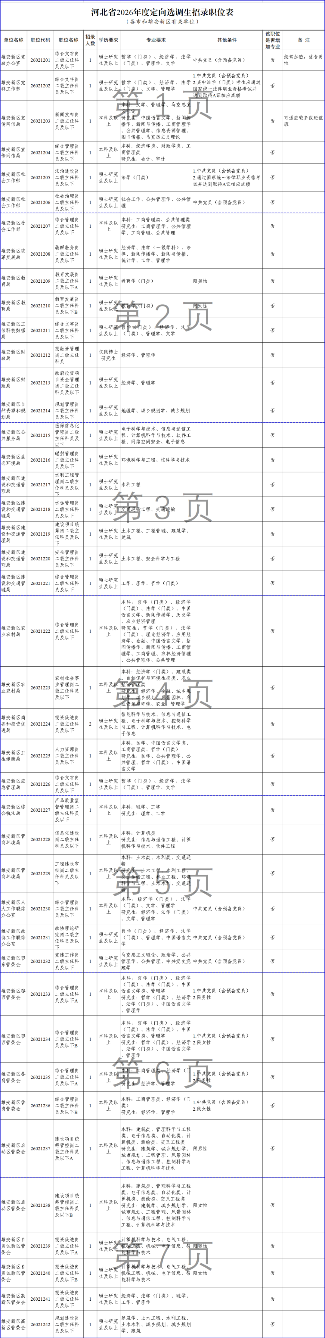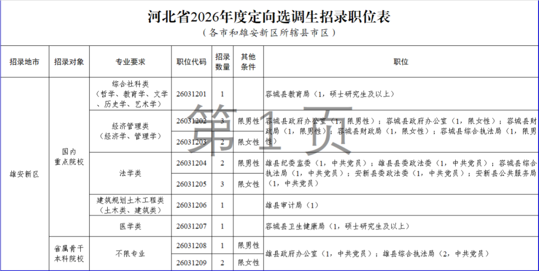 2. 河北省2026年度定向選調(diào)生招錄職位表