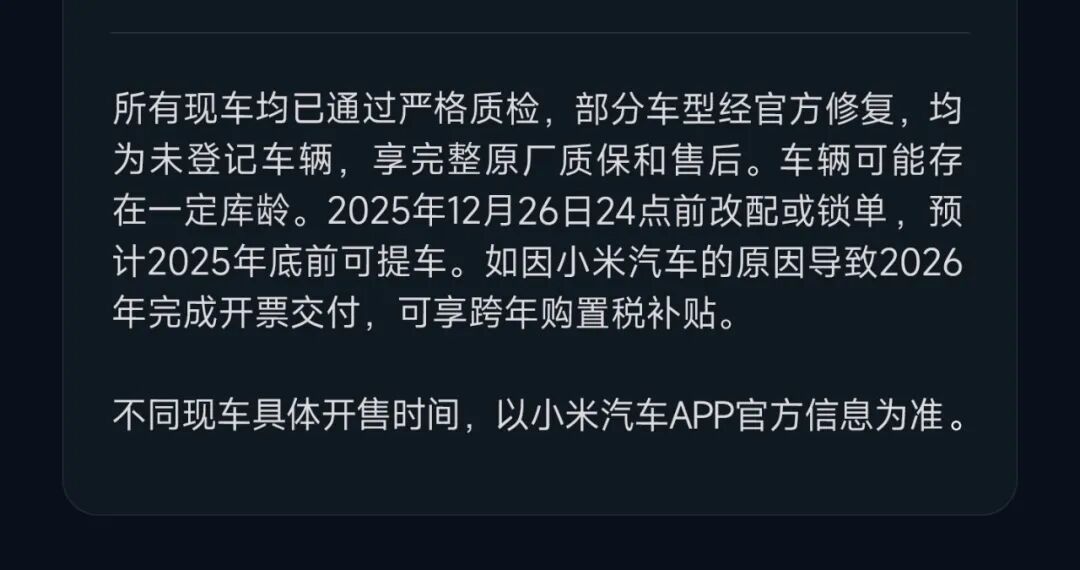 小米現(xiàn)車開售了,12月26日前鎖單,年底就能開上新車。
