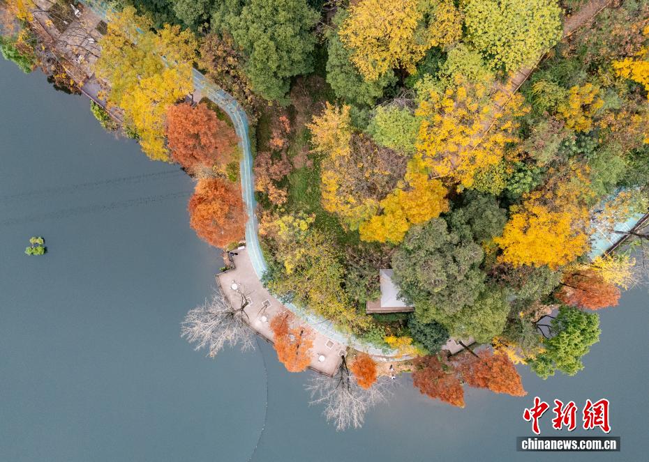 12月16日,航拍重慶彩云湖國家濕地公園水杉林。近日,位于重慶九龍坡區的彩云湖國家濕地公園內,成片的水杉逐漸披上“紅裝”,色彩斑斕,吸引不少市民游客前來觀賞拍照,感受城市濕地的冬日之美。(無人機照片)