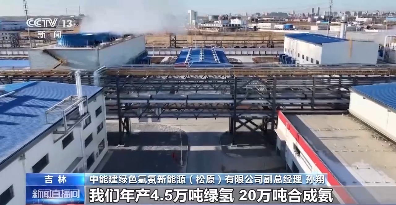 中能建綠色氫氨新能源(松原)有限公司副總經理 孫翔:這個項目64臺一千立方米級的電解槽,是目前在運的規模最大的,球罐儲氫規模最多可以儲到45萬立方米,也是全球最大的。我們年產4.5萬噸綠氫,20萬噸合成氨,這個生產規模也是最大的。