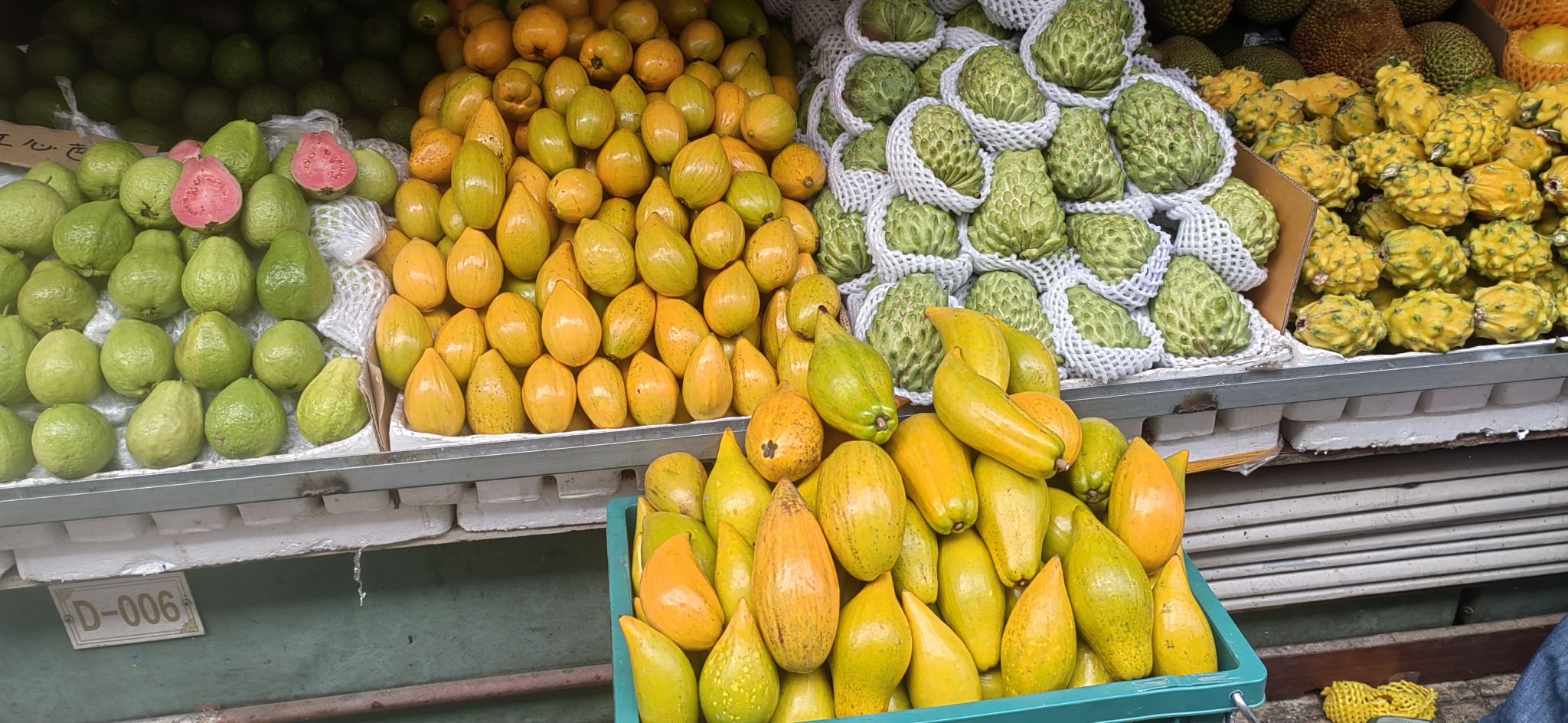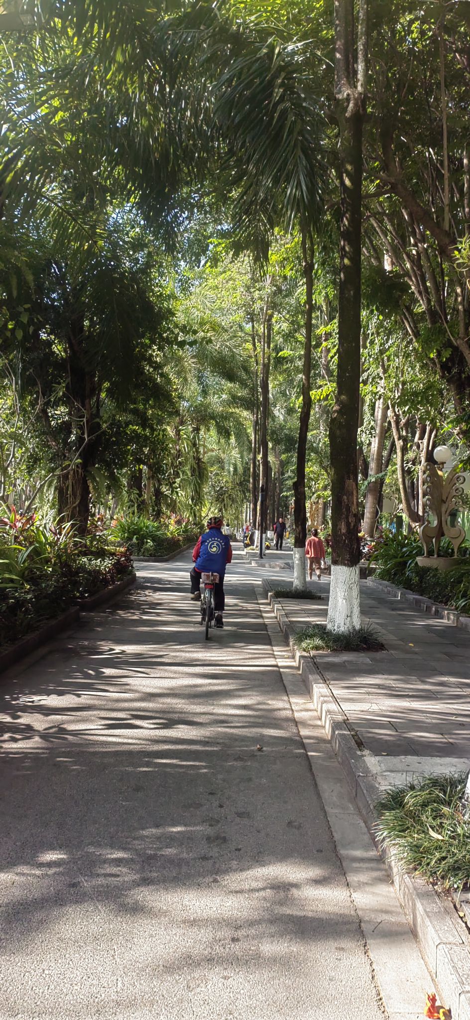 今天騎車到景洪市農貿市場游玩。到西雙版納一個半多月了,每天主要是到各景區游覽和到周邊騎游,沒有到大型超市和農貿市場去,主要是沒有什么需要買的。今年一直在御龍灣全國旅居康養基地住,每天28.5元管吃管住,早上4個炒菜,2個小咸菜,有饅頭、花卷、米飯,(有時有油條或鹵面等),有蒸紅薯、蒸南瓜,有綠豆小米粥,大米粥,豆漿等,每人一個雞蛋。晚飯和早飯差不多,但沒有雞蛋和豆漿。中午六個炒菜,一般情況下都有雞腿或雞塊,紅燒肉或燜肉條、小酥肉等,午餐一般都有香蕉或西瓜、橘子、蘋果等水果。我們覺得很好,沒什么可買的,大家都到附近趕擺(趕集),我們也去趕擺,買點熱帶水果嘗嘗。除此沒什么需要的,大家都說農貿市場很熱鬧,我們今天也去看看,確實熱鬧,各種物資應有盡有 ,琳瑯滿目,只可惜我們都用不著。