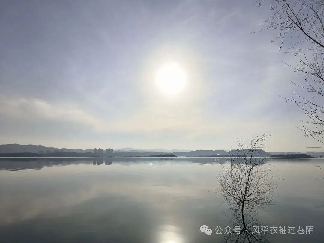 冬日的江面似被凍住了一般,平展展地鋪向遠(yuǎn)方,連一絲漣漪都吝于泛起,把澄澈的天光、晃眼的日輪,還有遠(yuǎn)處淡墨似的山巒與樓宇,都妥帖地收進(jìn)了鏡面似的水波里。