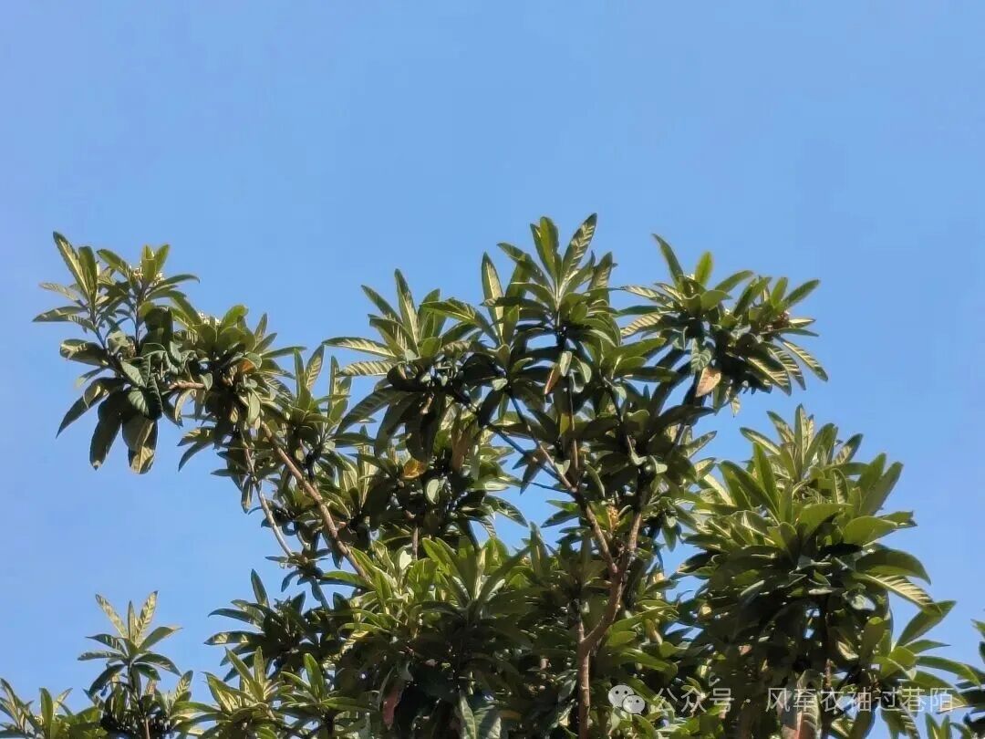 出門上班時,特意緩步慢行。目光漫過樹木與花草——那幾株香樟依舊豐茂,黃綠的葉子沉沉垂著,散發(fā)著隱約清冽的香氣,宛如靜默的守望者,從不參與季節(jié)的喧鬧與繁華,似乎一出生便置身世外。枇杷樹則不同,在澄澈得近乎透明的藍(lán)天映襯下,兀自撐著一身濃綠。葉片是狹長的橢圓狀,層層疊疊地簇在枝椏間,向陽的葉邊被日光鍍上一層淺金,背陰處則凝著深綠的墨色,明暗交錯間,倒像把秋的生機牢牢攥在了枝頭。