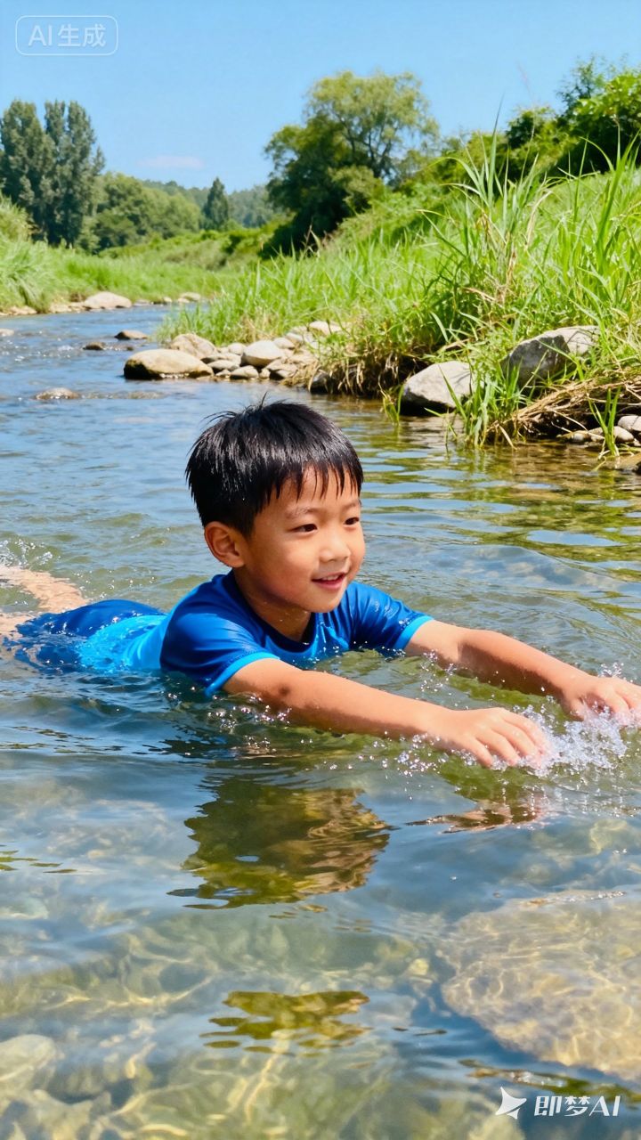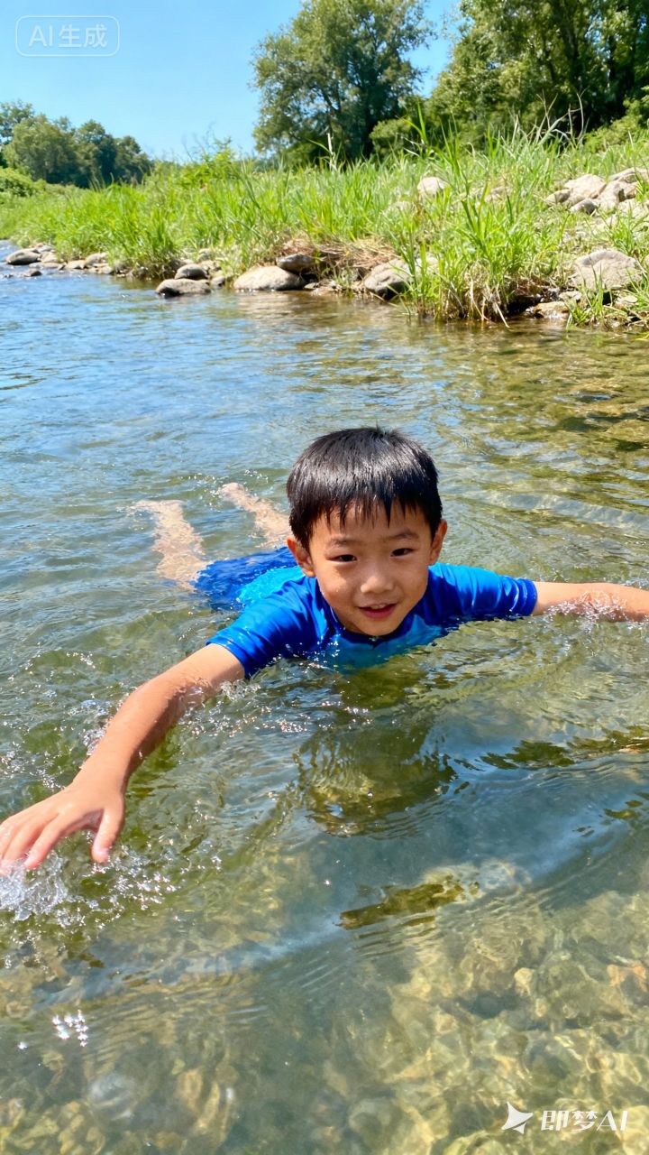 學校門口有一條清澈的小河,宛如一條靈動的絲帶。一次,孩子們實在忍不住河水的誘惑,紛紛跳進河里嬉戲。我也脫掉衣服,興奮地跳了進去。可我個子太矮,沒一會兒就沉了下去。腳觸到河底后,我猛地一蹬,整個人一下子躥到了河面上。接著,我手腳并用,拼命地撲騰,還喝了好幾口水,好不容易才狼狽地爬上了岸。當時我嚇得魂飛魄散,回到家也不敢把這件事告訴大人。