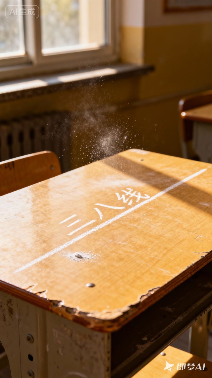 剛進教室,我便迫不及待地跑到講臺上,拿了一根粉筆,回到自己的座位。在桌子中間劃下一條“三八線”,還故意讓自己的“領地”稍大一些,并且一本正經地警告后來的同桌,不準他超過這條線。可同桌哪肯乖乖就范,慢慢地往我這邊擠過來。于是,一場沒有硝煙的“領土爭奪戰”就此打響。一來二去,我們倆身上都沾滿了粉筆印,活像兩個小粉人,你看看我,我看看你,忍不住哈哈大笑起來。