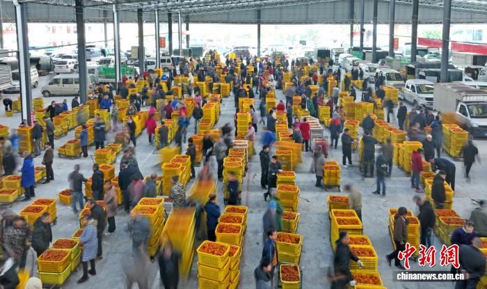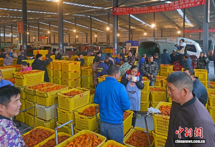 圖為平樂縣沙子鎮的柿餅交易市場,現場熱鬧非凡,產銷兩旺。滕忠 攝