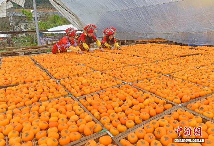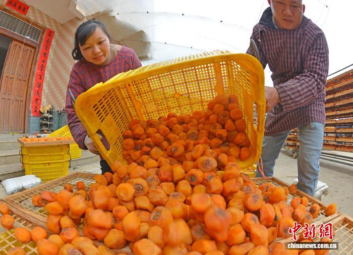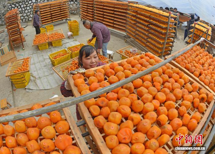 圖為民眾正在晾曬柿子,制作柿餅。滕忠 攝