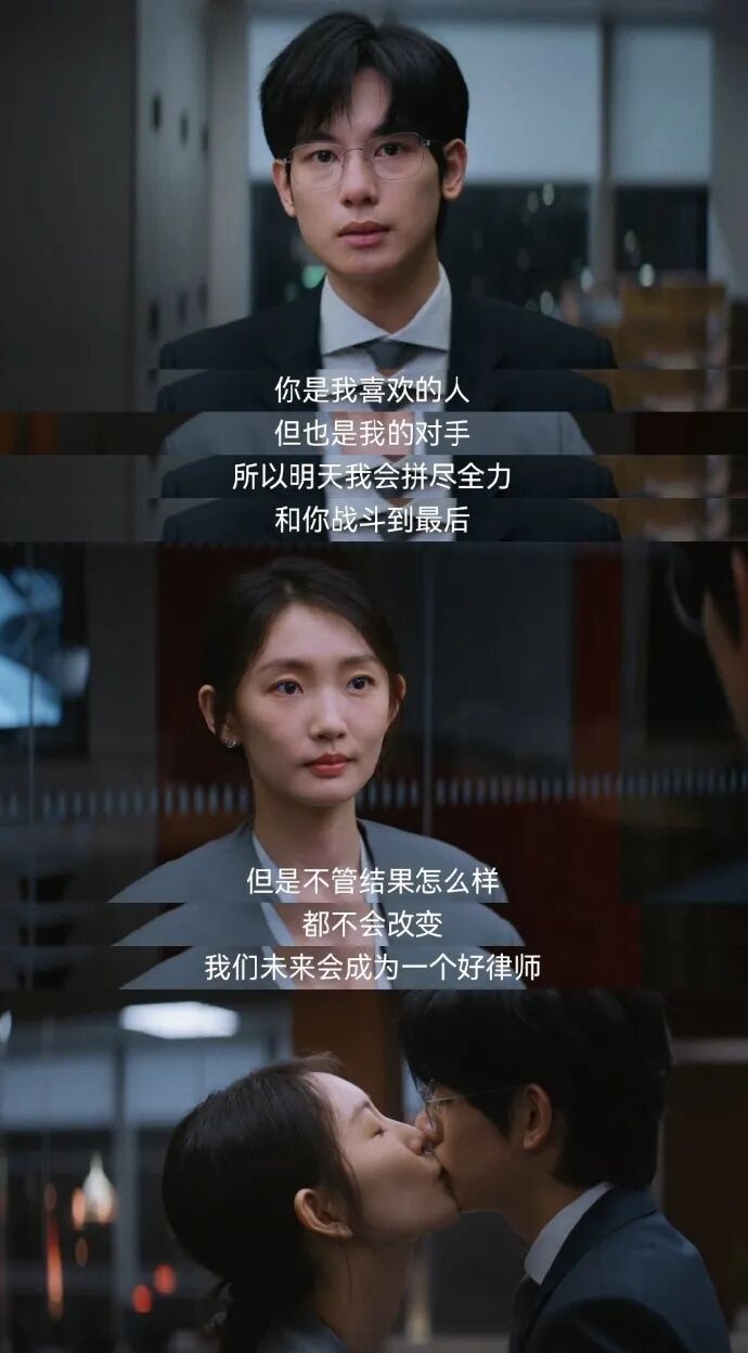 而且劇集本身也存在結構性問題,開局一直渲染競爭多激烈,幾個實習生一個比一個卷,但劇情進入到中段還是開始談戀愛了。君安律所仿佛成了婚介所,出現了江晨和任家童這對實習生學霸cp,還有周律和顏菲這對帶教老師和實習生的cp,另外就是白律和宋一帆2個帶教律師的同事cp。而最終沒明確有沒有走到最后,中線感情線卻擠占了戲份,感覺很沒必要。