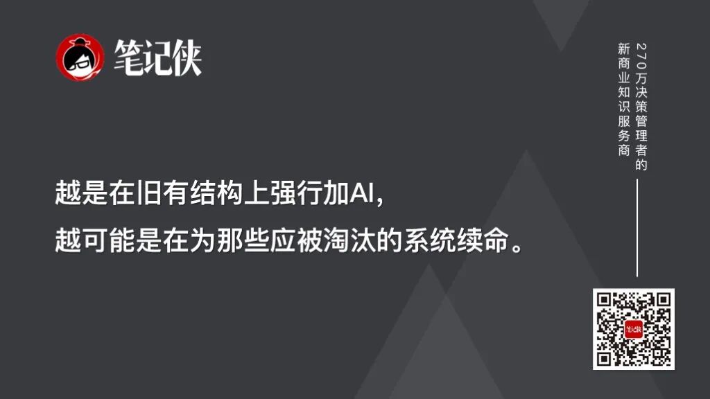 我們在舊結構上越是用力地“加AI”,就越有可能是在給那些本該被淘汰的系統續命。真正的變革,從來不是在舊軀殼上修修補補,而是從基因層面重新編碼。