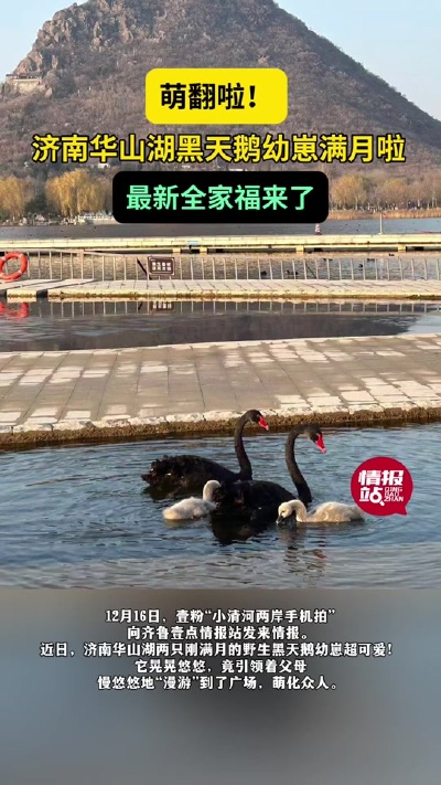 濟南華山湖黑天鵝幼崽滿月啦,最新全家福來了