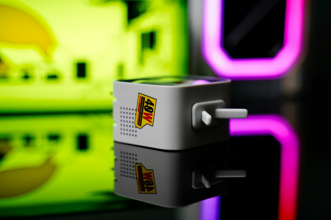40W 多協議快充,大部分電子設備都能使用。GaN 材質十分輕巧,一個頂倆,再也不用拿一堆充電頭出去啦~
