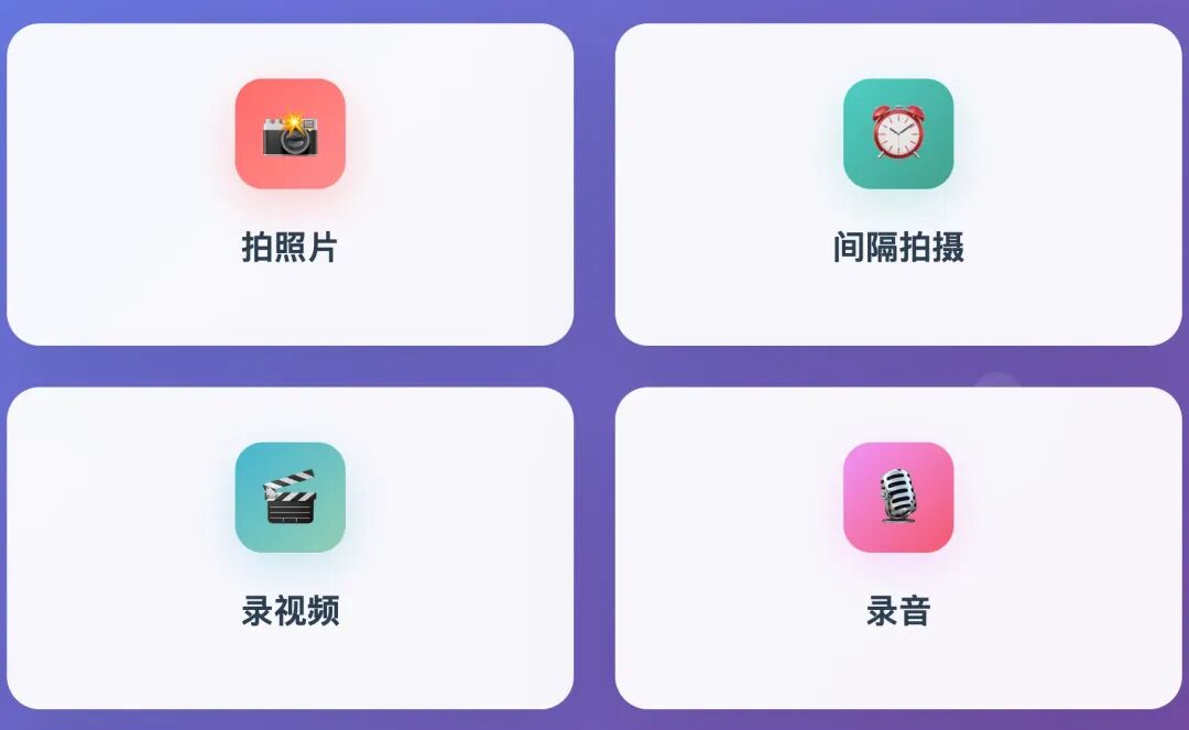 它一共能做 4 件事:間隔拍攝(Story Mode)、拍照片、錄視頻、錄音。