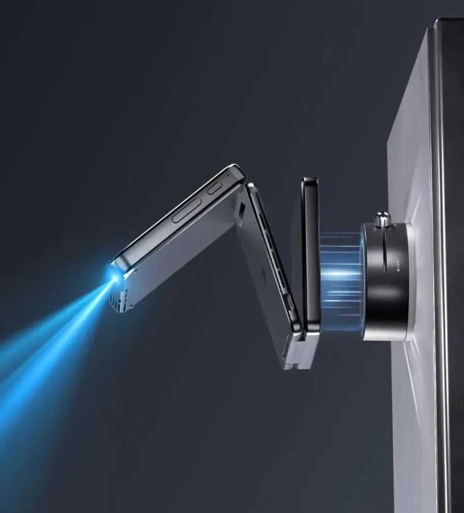 配備的雙面磁吸底座,可以將投影儀穩穩地固定在任何鐵質表面上。