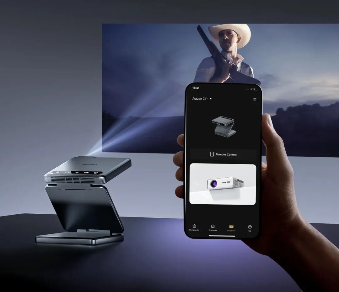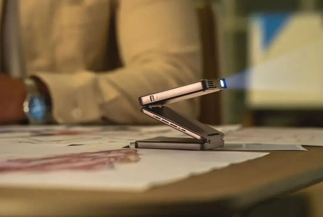 這意味著它不僅能放在桌子上投,還能折疊調整角度,投在天花板、白墻甚至地板上。