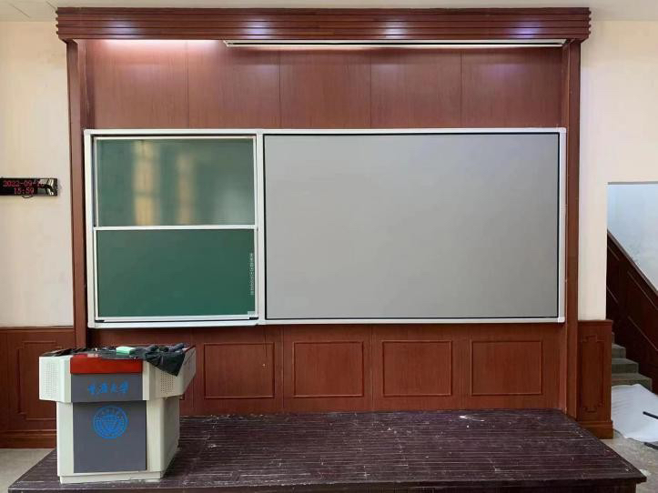 一凡出新品了 , 一凡又出新品了。一凡的新品很多,據陸安兵介紹,其公司研發的"變軌式平面推拉黑板"屬世界首創。該產品由四塊黑板推拉組合,可根據配套多媒體設備尺寸適當調整,上下滑軌采用全新設計的開放式雙滑輪雙導軌,內置兩組導軌,通過與活動黑板相連的上下兩組滑輪小車和變軌導向部件組合,引導活動黑板滑動至與固定黑板平行的軌道內,使中間的活動黑板在處于關閉狀態時,自動與固定黑板的面組合在同一個平面。不僅實現了多媒體教學的無縫對接,黑板相鄰無邊設計,使黑板在關閉狀態時整體就如一塊平面黑板,完全符合教師的使用習慣,增強教師書寫的流暢性及學生的感觀舒適性。與傳統的黑板不同,智能互聯書寫板是2021年新研發的一款適合各種教學場景的新產品,在保留智慧黑板現有功能的同時,在兩側副板上加入了與大屏一體化的紅外框,讓兩側的副板實現了與中間大屏間的互動,板書內容可實時同步顯示在大屏上,并帶有記憶功能,支持二維碼一鍵分享保存,老師只需將手寫稿轉化為數字二維碼,臺下的人只需一掃就全部搞定,實現輕松快樂教學。便于將課堂上來不及記錄的板書內容通過手機等智能終端分享用于學生課后復習理解。 目前,教育信息化深度融合是教育發展的一個新的趨勢,通過這次疫情,大家也能明顯感感受到線上教學需求的迫切。黑板需要能與在教學中使用的信息化產品形成互動、傳輸,對信息科技的訴求與依賴變得越來越強。在這種大趨勢下,湖南一凡教學設備有限公司作為黑板的生產廠商,正調整戰略布局,提升技術,著重于適應現代融合教學的產品研制,本著"業以人為本,敢為行業先"的企業精神,全心全意為教育事業貢獻力量。