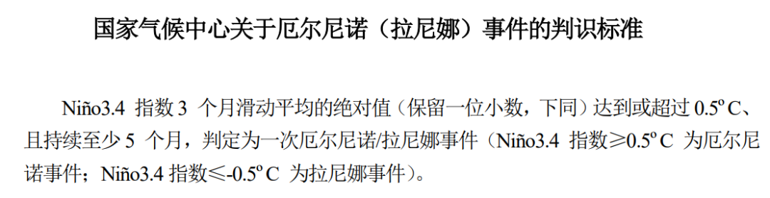 厄爾尼諾與南方濤動合稱為ENSO,它是熱帶太平洋海氣相互作用現象,包含厄爾尼諾(暖相位)和拉尼娜(冷相位)兩種模態。拉尼娜狀態并不必然發展為拉尼娜事件,當拉尼娜狀態持續時間大于和等于5個月,判定為形成一次拉尼娜事件。