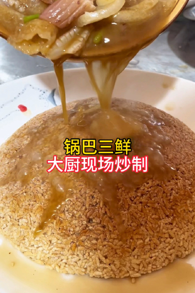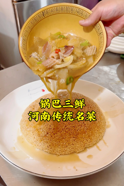 河南傳統名菜,鍋巴三鮮,湯汁一澆,吃著焦香酥脆,令人回味無窮