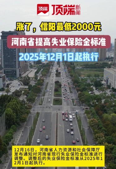 12月16日,河南省人力資源和社會保障廳發布通知,對河南省現行失業保險金標準進行調整。調整后的失業保險金標準從2025年12月1日起執行。