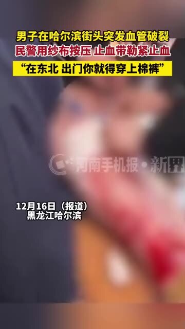 民警用紗布按壓、止血帶勒緊的方式止血,一邊救助一邊囑咐“在東北出門你就得穿上棉褲”。
