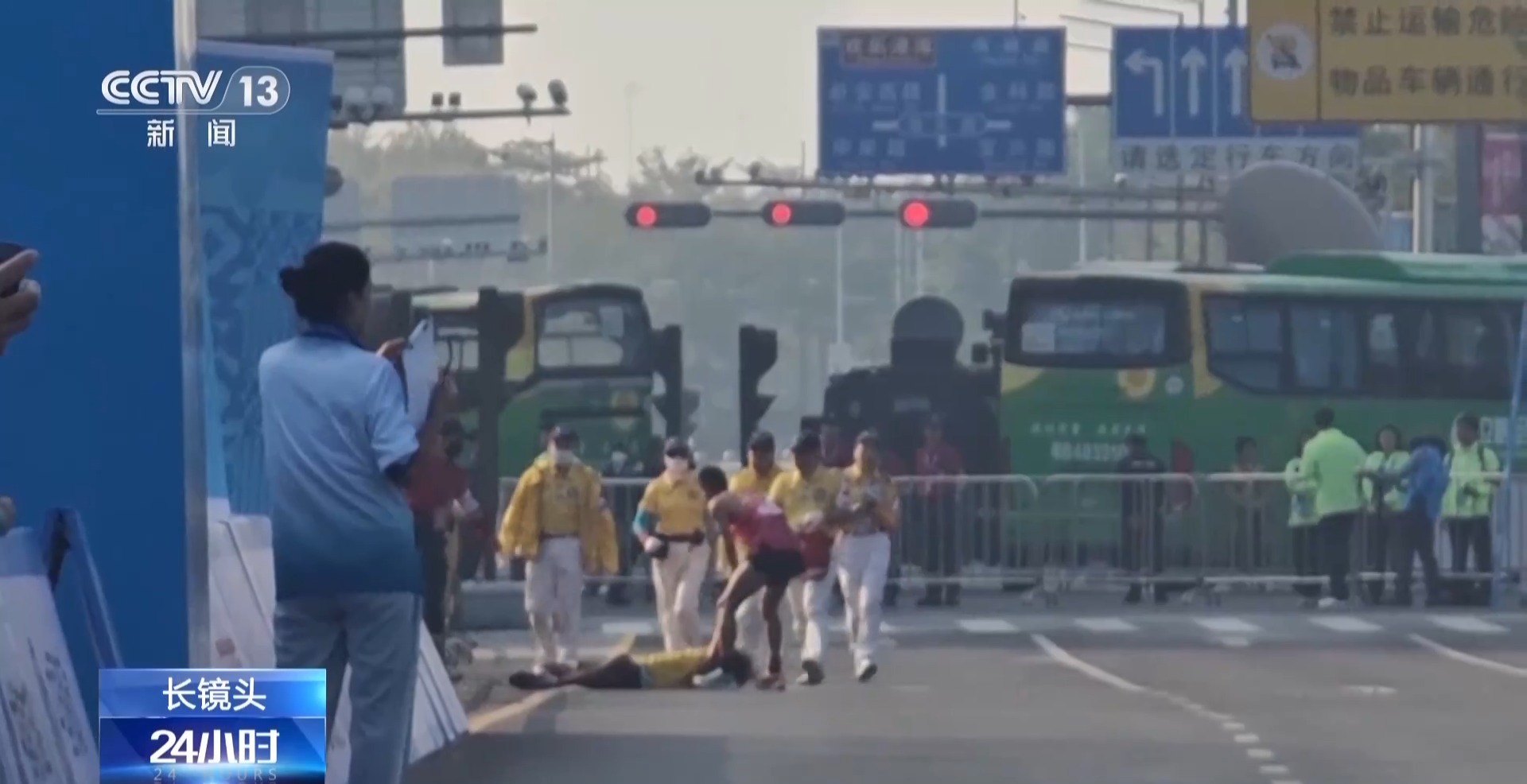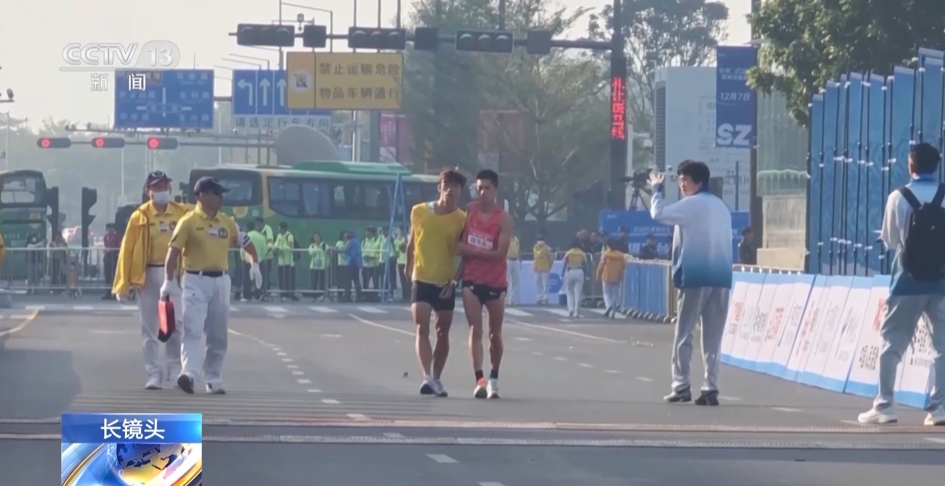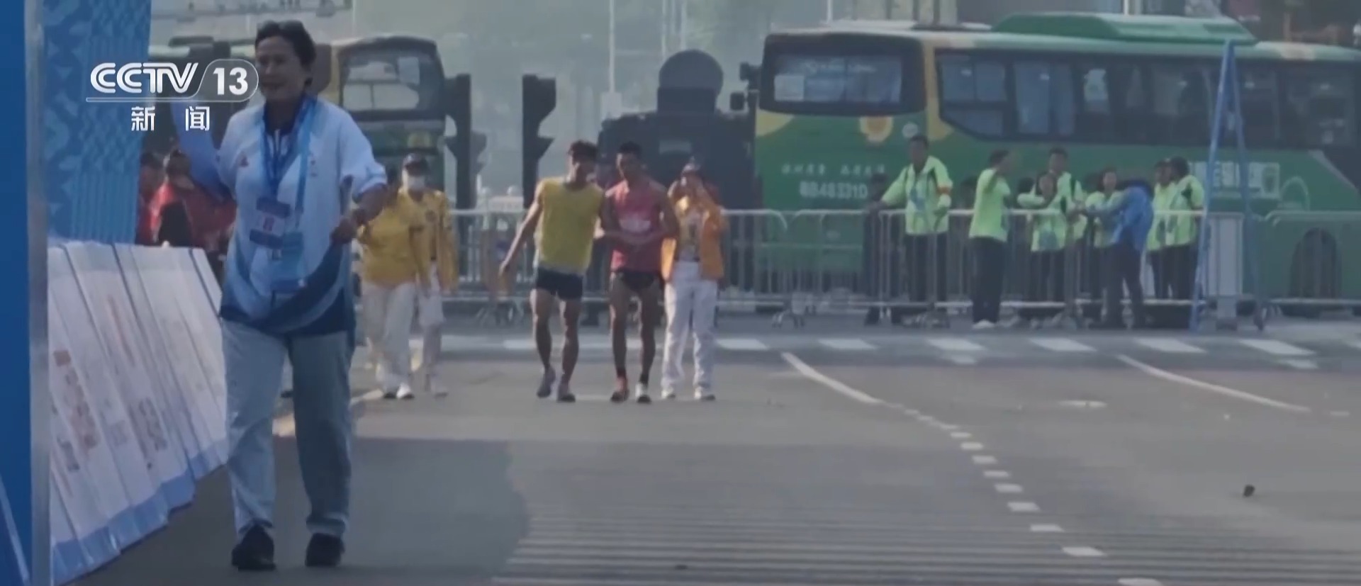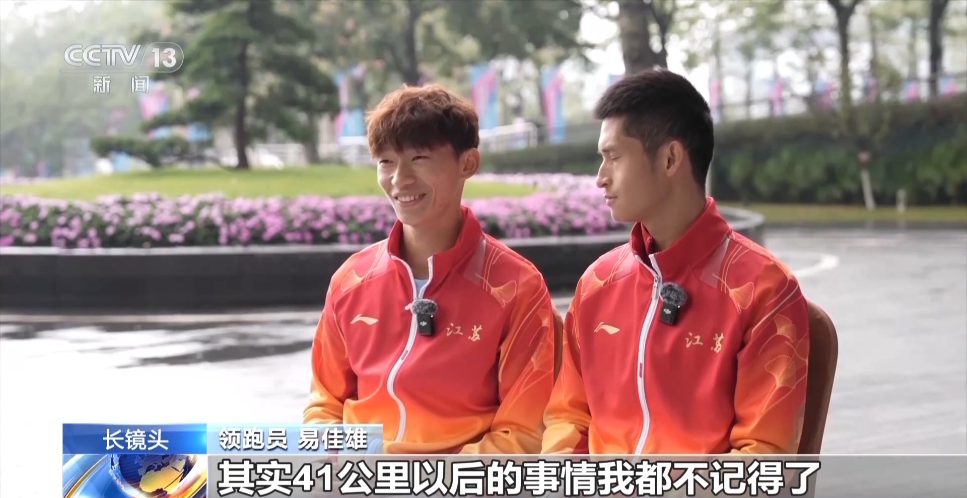 領跑員 易佳雄:其實41公里以后的事情我都不記得了,我到現在都不記得。我完全沒有意識了,我就記得對我的運動員說,我說你要先壓線、先壓線,因為我害怕后面的選手追上來了。我就想著能跑一點是一點,一定要過終點。