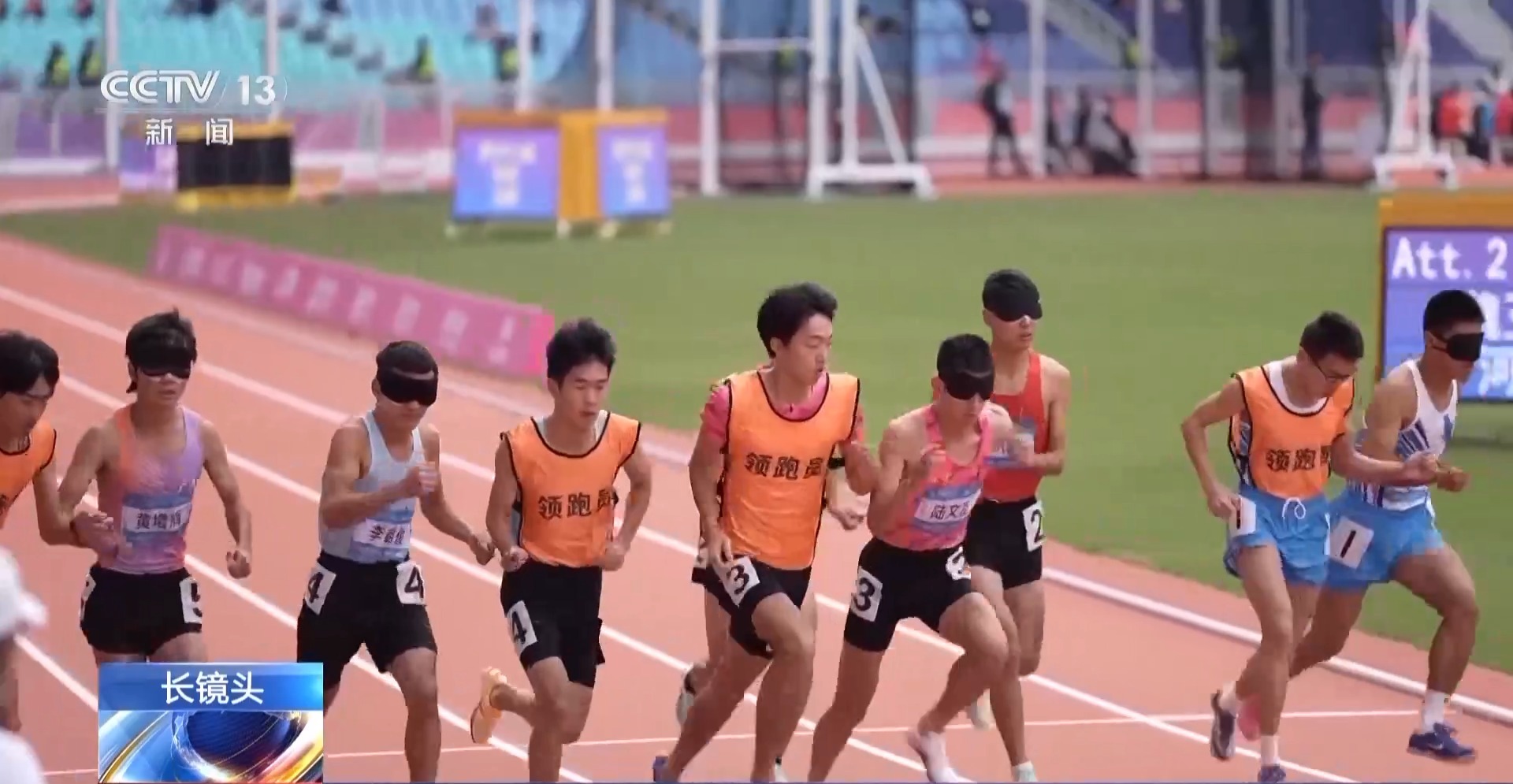 運動員 陸文旋:剛開始訓練的時候跑起來是找不到方向的,沒有方向感。后來是有領跑員,每次訓練都一起配合,一起找到默契,讓我找到一個方向感。給我腦海中畫了一個跑道的形狀。