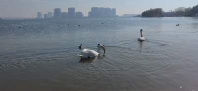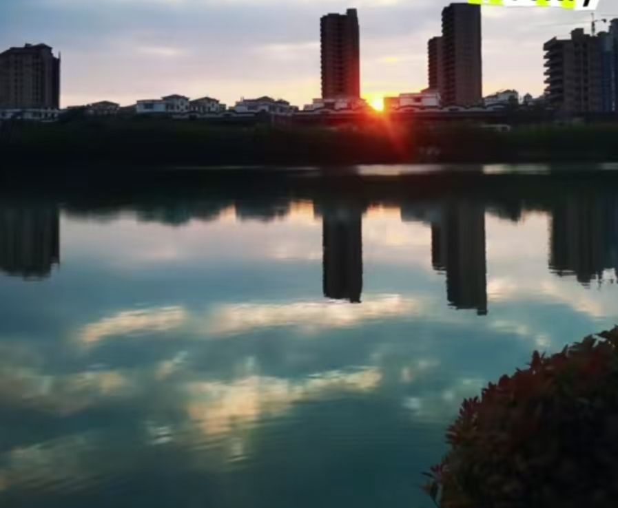 解析:首句“赤輪” 代指太陽,“噴薄”以火山噴發般的力度渲染朝陽躍動的瞬間。“染霞紅” “染”字賦予朝陽主觀能動性,仿佛以朱砂潑灑云霞;“霞紅”與后文“云旌”色彩呼應。次句“鎖”字將霧氣擬人化,如鐵鏈纏繞樓宇,強化朦朧感;“重樓”高樓大廈。“幻碧空” 霧氣與天空交融,使蒼穹如幻境,為下句“龍影動”埋下伏筆。第三句“鏡面初開” 指湖水平平,以“鏡”喻湖面,暗合“龍湖”之名;“初開”暗示晨霧漸散。“龍影動” 是點睛之筆:既可實寫湖中倒影隨波搖曳,又可虛指傳說中龍形在霧中若隱若現,增添神秘感。末句“云旌” 將云霞晨霧喻為戰旗,隨風舒卷,更具動態美與畫面感。“日華融” “日華”指陽光,“融”字寫云霞晨霧與日光交融,云蒸霞蔚,如顏料在水中化開,意境空靈;以“華”字點染光色層次。