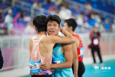 以老帶新,薪火相傳。女子七項全能聽障項目比拼中,浙江隊何美紅、錢金芝分獲金牌和銅牌。兩人在賽場上是對手,在賽場外是親密戰友。該項目全國紀錄此前由錢金芝保持,而何美紅這次奪冠創造了新的全國紀錄。