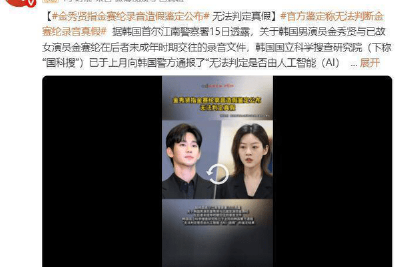 韓國娛樂圈焦點事件迎來關鍵進展——首爾江南警察署正式披露,韓國國立科學搜查研究院(國科搜)已就金賽綸"未成年時期與金秀賢交往"的爭議錄音出具鑒定報告,結論為無法判定該音頻是否經過AI偽造或人為篡改,這一結果讓持續半年的輿論風暴再度升級。