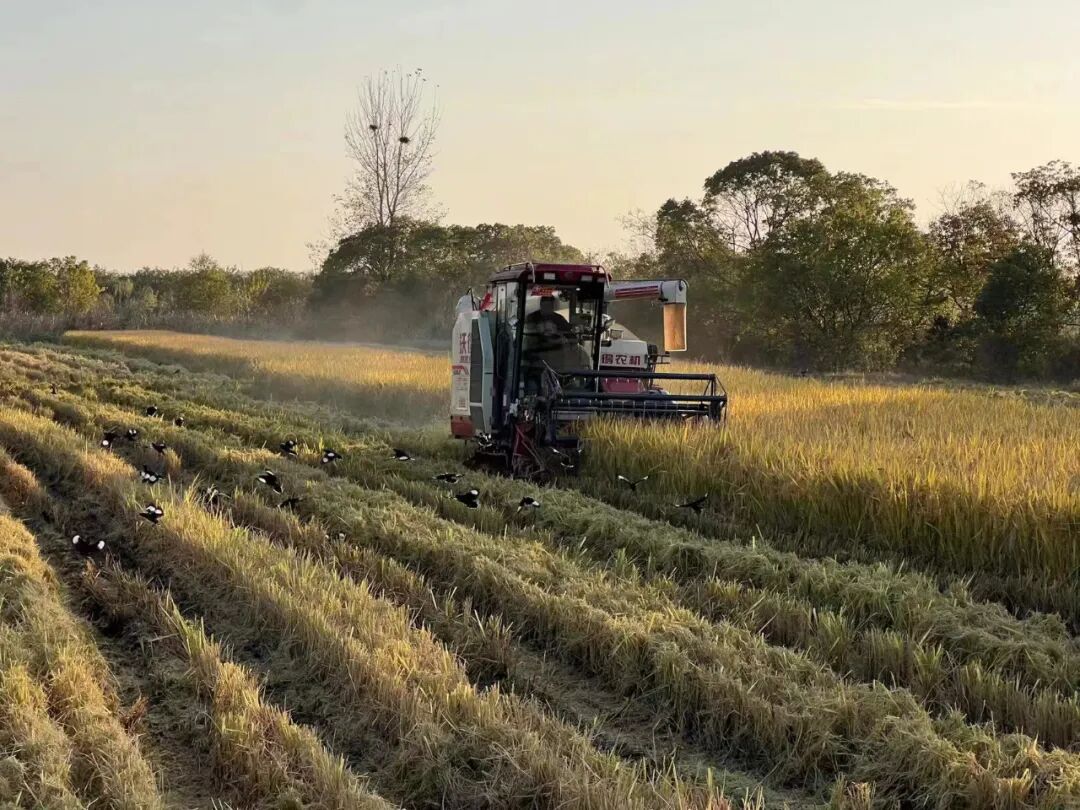 十月,秋風染黃稻穗,巢湖流域的田野換上金色盛裝。稻穗低垂著頭,穎殼從淡綠轉為深黃,米粒飽滿得泛著油光,散發著成熟的芬芳——這是湖水灌溉、濕地滋養、稻蝦共蝦與綠色防控共同的成果。收割的鐮刀劃破田壟,收割機穿梭在金色海洋里,稻穗被割下、脫粒,秸稈粉碎后還田,笠年與紫云英的腐殖質一同回饋泥壤。脫粒后的稻谷在陽光下晾曬,褪去多余水分,再經去殼、篩選等28道工序,化作潔白瑩潤的大米,走上我們的餐桌。
