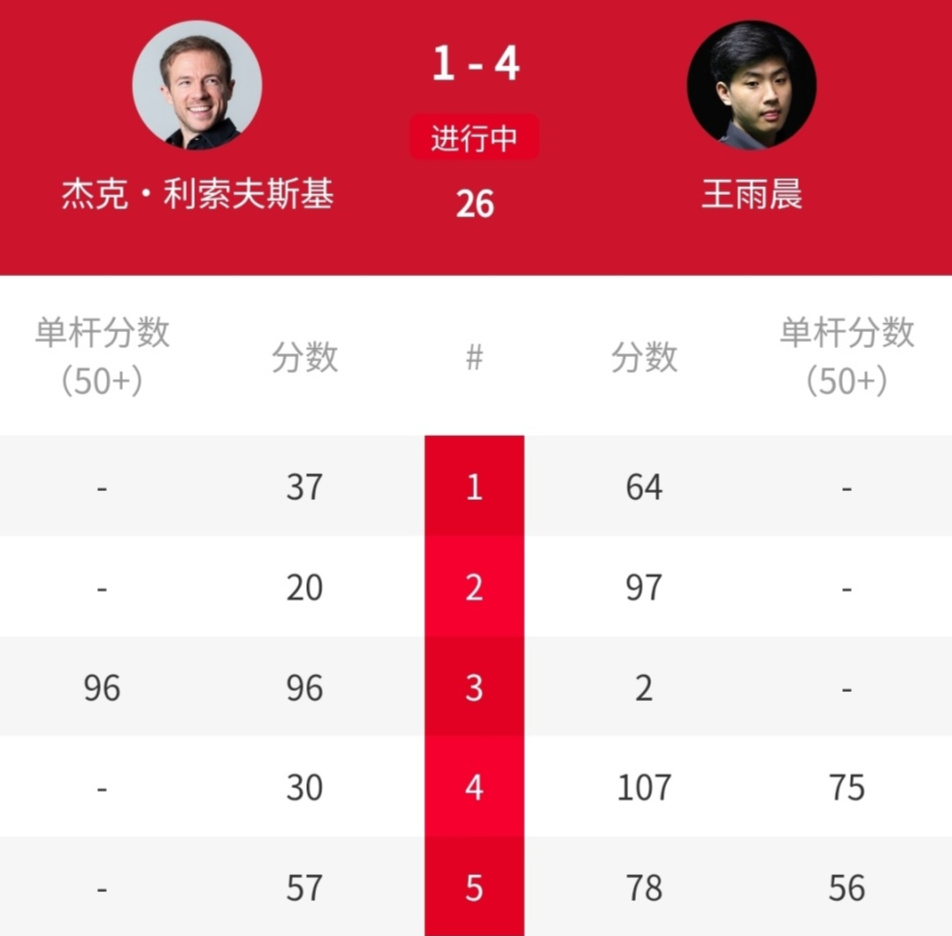 第一輪最后一個出場的是中國香港選手王雨晨,他在與新科北愛爾蘭公開賽冠軍“小司機”杰克-利索夫斯基比賽中超水平發揮,總比分4-1爆冷晉級。至此,晉級32強的中國選手達到14名,幾乎占到半壁江山,祝賀他們!