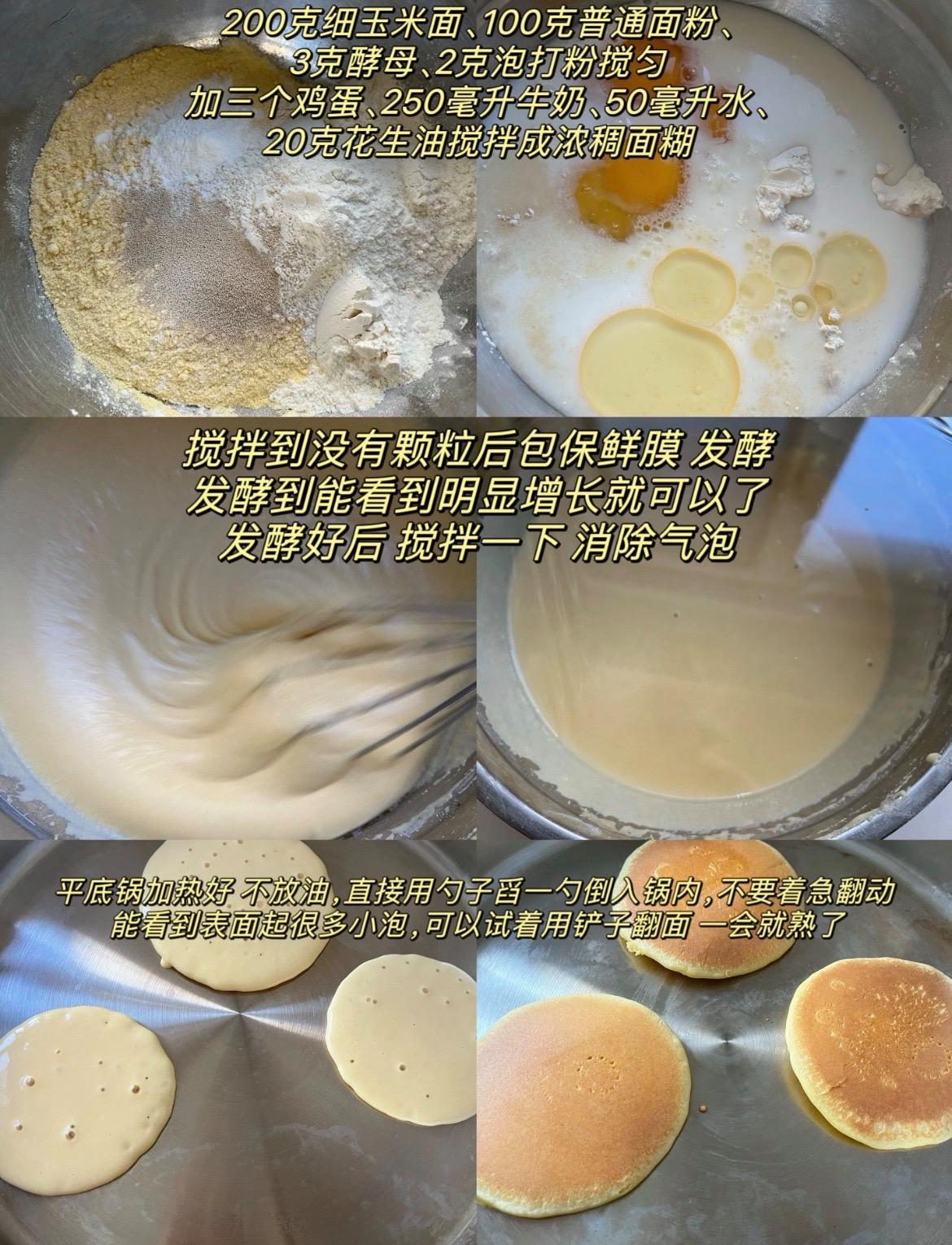 細(xì)玉米面 200克、普通面粉 100克、酵母 3克、泡打粉 2克、雞蛋 3個(gè)、牛奶 250毫升、清水 50毫升、花生油 20克