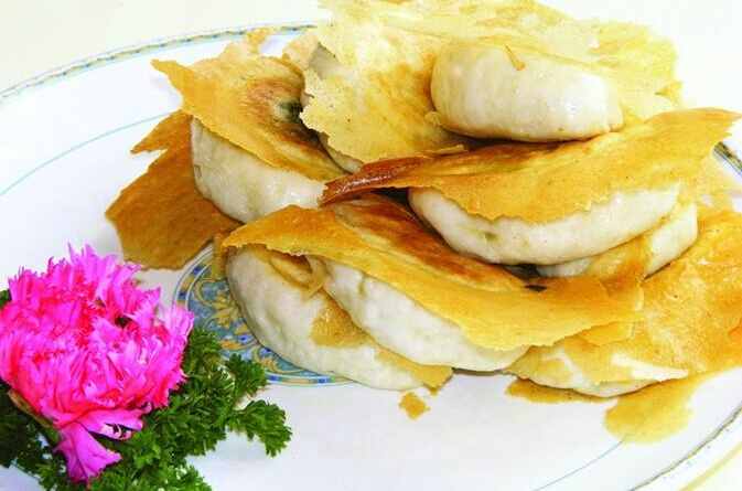 晚餐自然要尋永城味道。拐進(jìn)市區(qū)一條老巷,百年傳承的薛湖牛肉煎包鋪?zhàn)诱爸鵁釟狻_@家始于北宋的小吃,曾被宋帝御賜“二品包子”,果然名不虛傳。特制精粉面皮包裹著黃牛肉與十八味中藥材調(diào)制的餡料,經(jīng)鋼板平鍋煎至底部焦黃,開口露餡、上濃下焦,咬一口酥嫩清香,肉汁四溢。