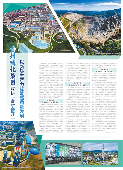 “富礦精開”的目標是實現經濟效益、社會效益、生態效益多贏。貴州磷化集團以綠色為發展底色,攻克行業環保痛點,探索出資源循環利用的綠色之路,生動詮釋“綠水青山就是金山銀山”,為實現“雙碳”目標貢獻“磷化方案”。