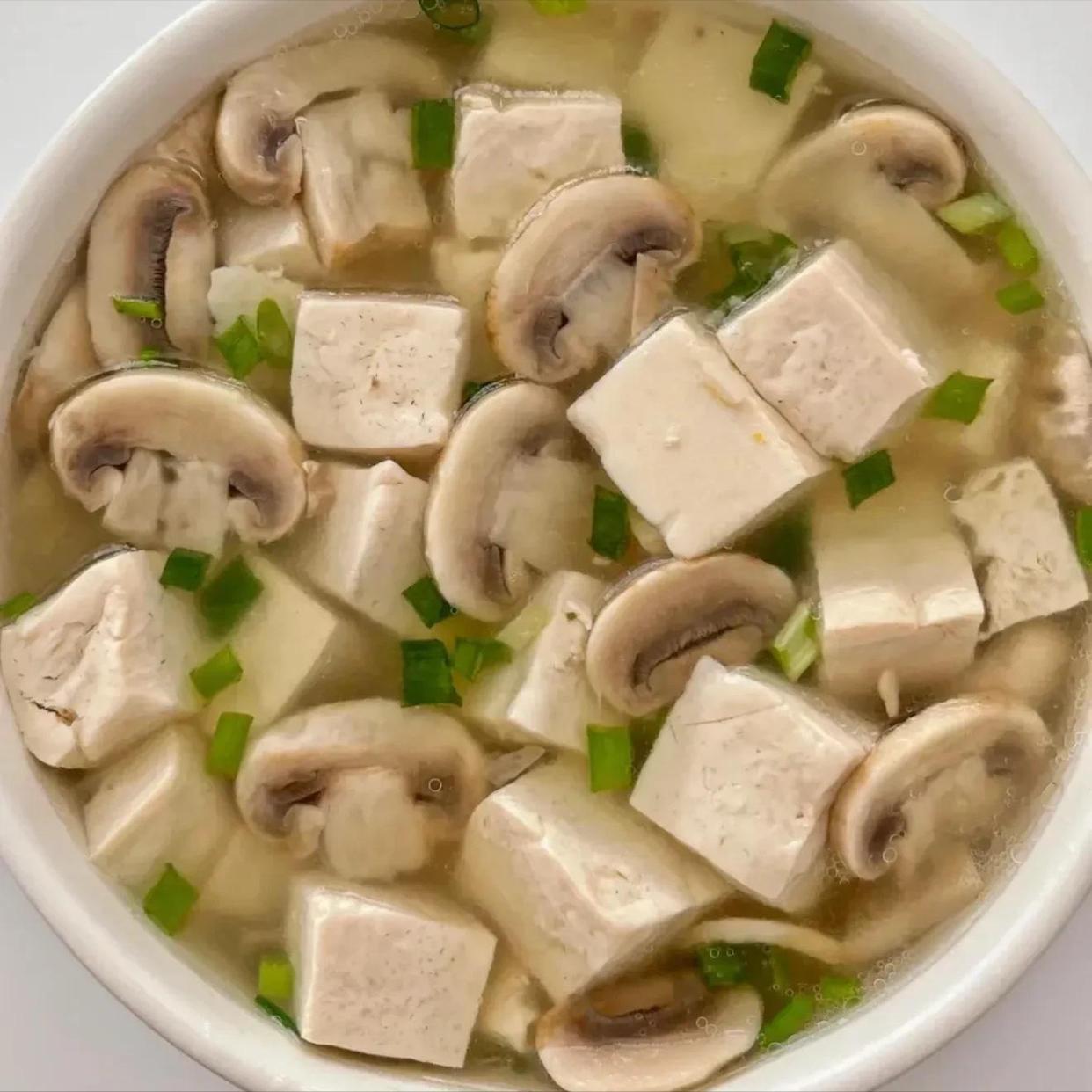 口蘑營養豐富,能補充礦物質和氨基酸,豆腐是植物蛋白的優質來源,兩者煮成湯,清淡易消化,鮮香味美,康復期喝能補水補營養,還不刺激腸胃。