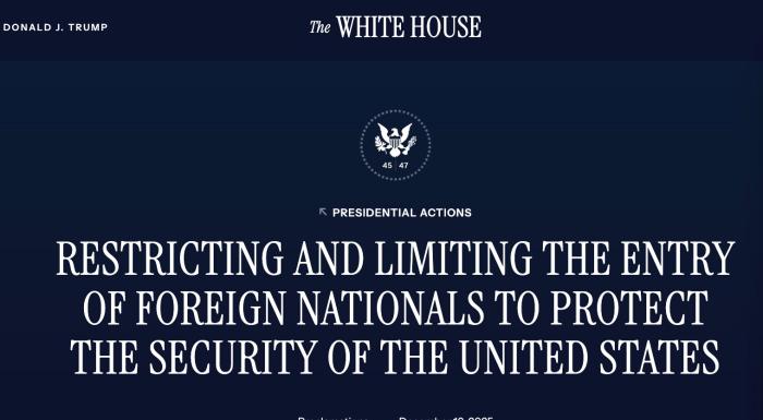 白宮發(fā)布的公告宣布了這些變化,公告中寫道:“所施加的限制和約束是必要的,目的是防止美國缺乏足夠信息以評估其潛在風險的外國公民入境,同時推動外國政府配合美方工作,執(zhí)行美國移民法規(guī),以及推進實現(xiàn)其他重要的外交政策、國家安全和反恐目標。”