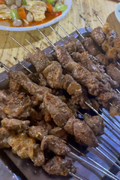 鄭州西郊老字號美食,羊肉串現吃現切,涼菜花生米也是下酒菜