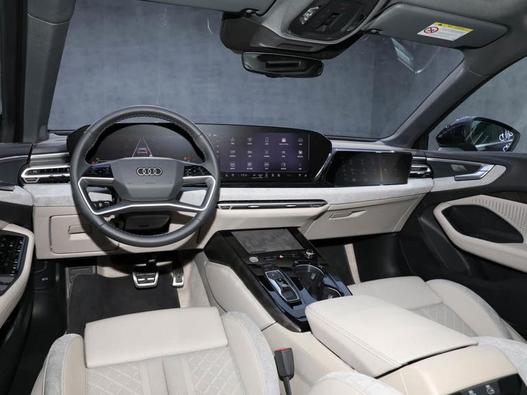 我們首先來看新車的外觀設計方面,前臉采用奧迪家族標志性六邊形進氣格柵,內部為全黑蜂窩狀結構,配合可發光四環LOGO,營造出極具未來感的視覺效果。矩陣式LED大燈支持8種動態光型,夜間辨識度極高,燈組內部集成雙層點陣式光源,可根據路況自動調節照明范圍。前保險杠兩側的導流槽設計,不僅優化了空氣動力學性能,更強化了整車的運動氣質。
