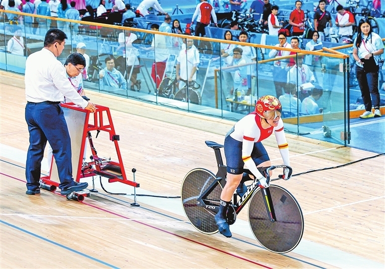 教練的鼓勵支持,隊友的關心幫助都化作巨大的能量。最終,鮑珊菊又一次戰勝了自己,在十五運會奪得女子團體競速和250米個人計時賽兩枚金牌。