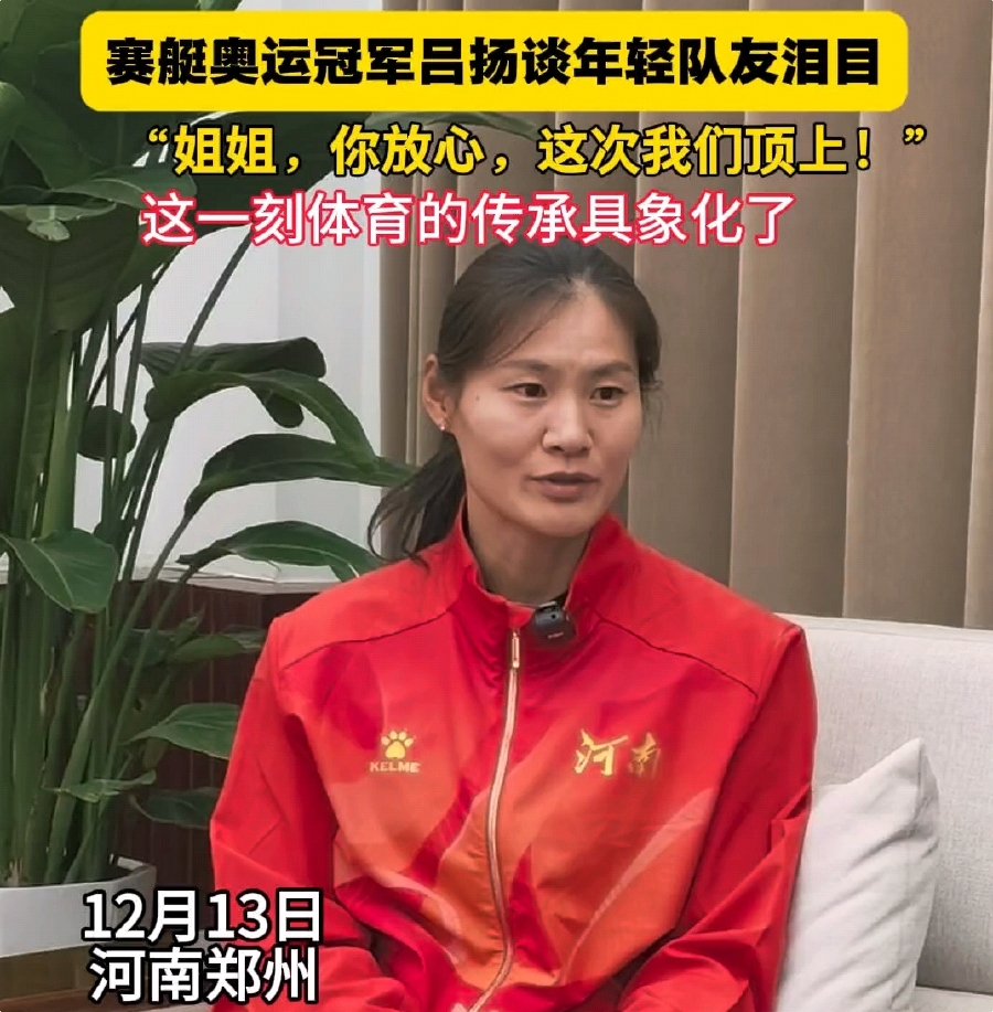 在進行采訪的會議室墻面上,掛著鄧亞萍、劉國梁、陳沖等9位河南奧運會冠軍的照片,其中最后一位正是呂揚。那是2021年她在東京奧運會上,獲得四人雙槳冠軍后的照片,頭戴花環、手舉金牌,笑得特別燦爛。