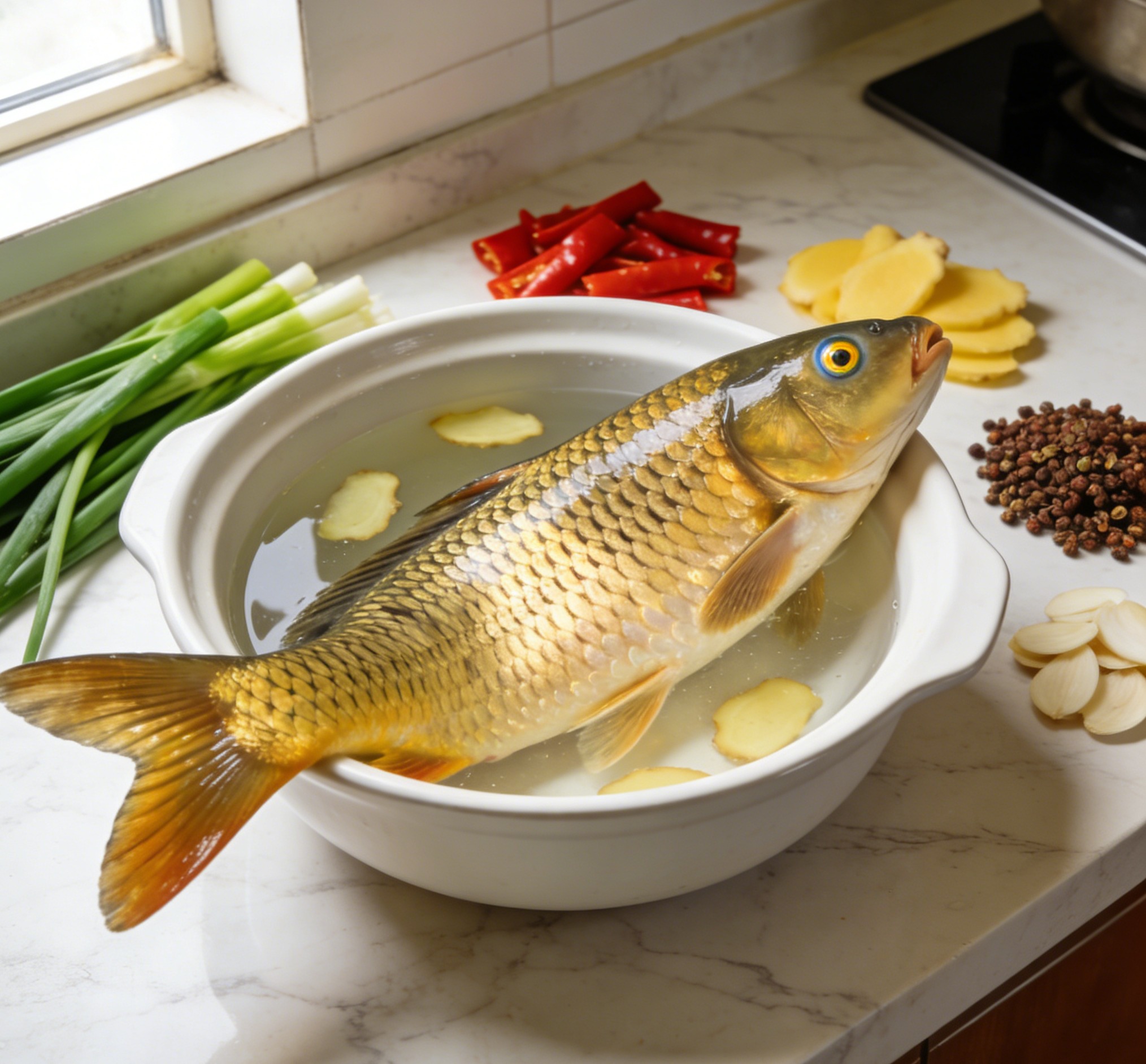 - 主料:鮮活黃河大鯉魚1條(重量約1.5-2斤最佳,這個重量的鯉魚肉質緊實,口感不柴);