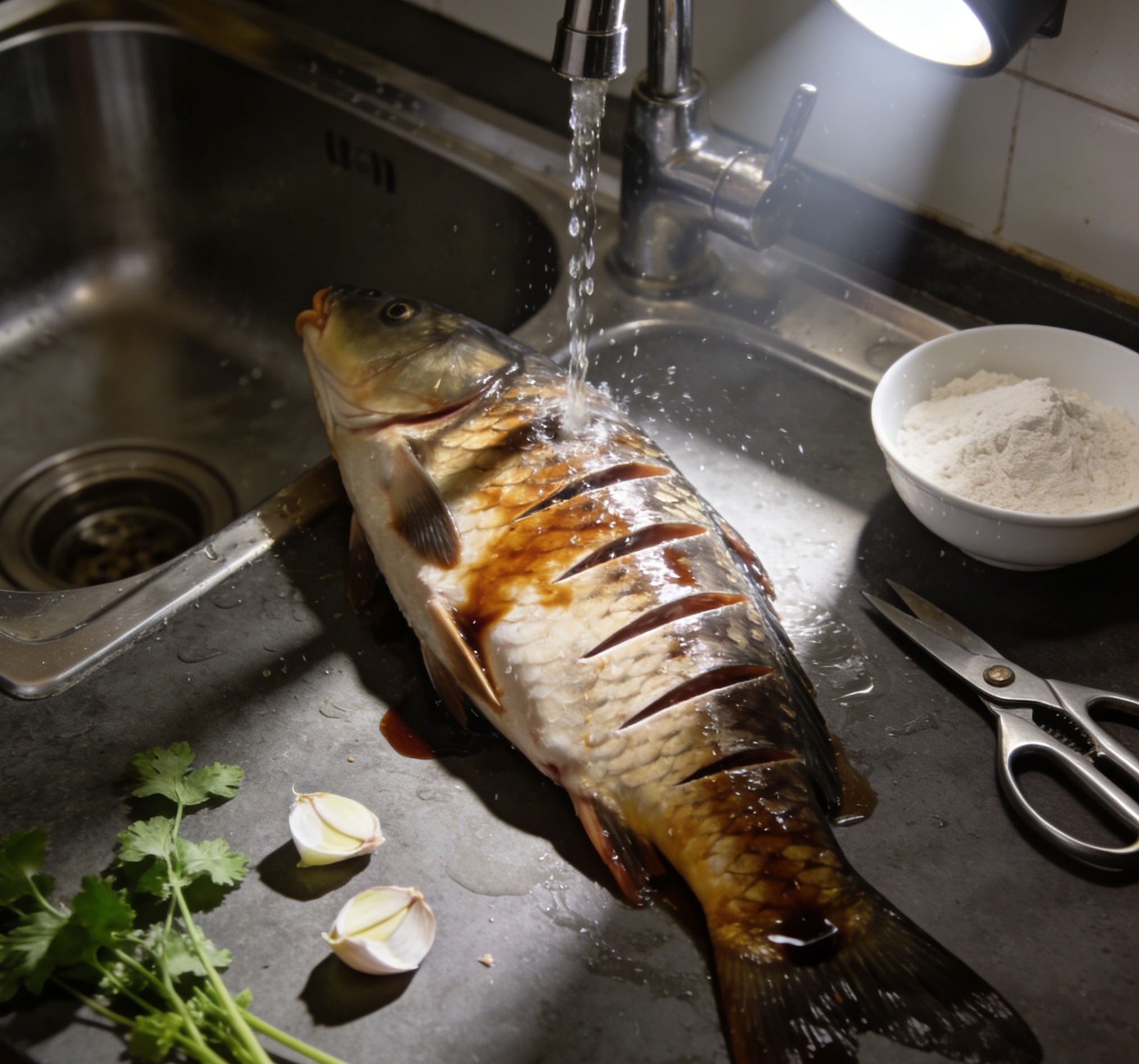 1. 宰殺處理:將黃河大鯉魚去鱗、去鰓、去內臟,注意要將魚腹內的黑膜徹底刮干凈(黑膜是腥味的主要來源之一);