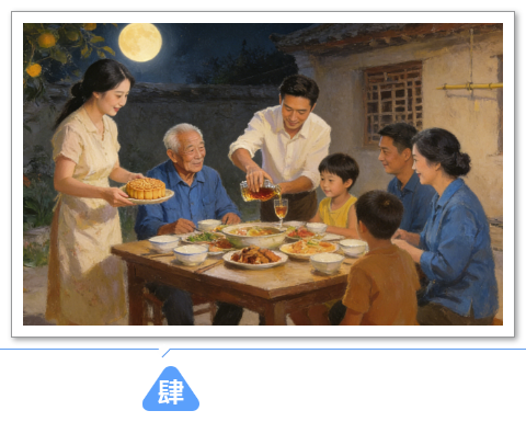 歲月流轉(zhuǎn),我們兄弟姐妹陸續(xù)走出村子,在外工作、安家,老家只剩下父母,伴著那輪時彎時圓的月亮。每年中秋節(jié),成了父母最期盼的日子,他們早早張羅飯菜,就盼著我們回家團圓。我們也總會帶著妻兒趕回故鄉(xiāng),小小的院子里又充滿歡聲笑語,陪著父母度過一個又一個月圓之夜。