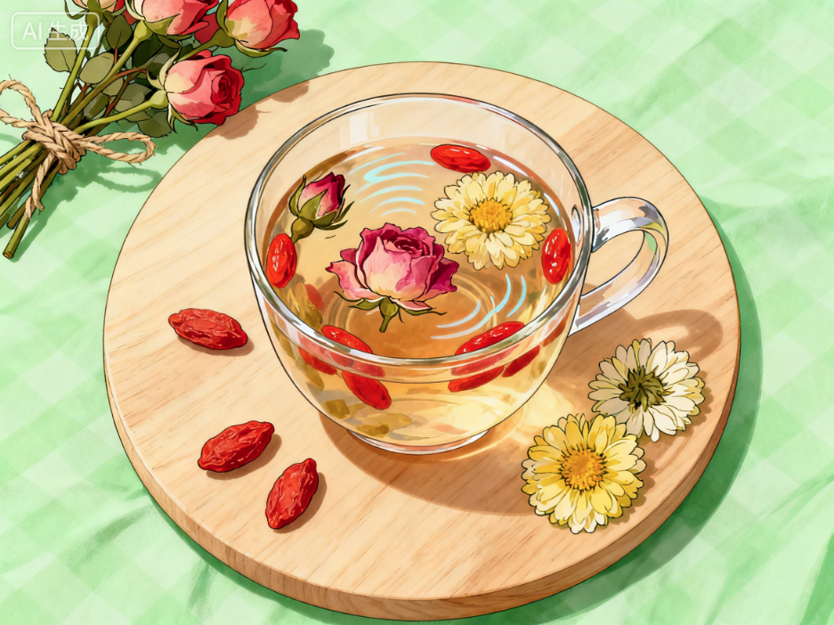 玫瑰枸杞菊花茶:花茶經典搭配。在玫瑰花的基礎上,加入枸杞子滋養肝陰,以防郁久化火;再佐以清肝明目的菊花,平衡整體。此方疏肝不忘養陰,清火而不傷正,非常適合長期面對電腦、用眼過度的職場人士。
