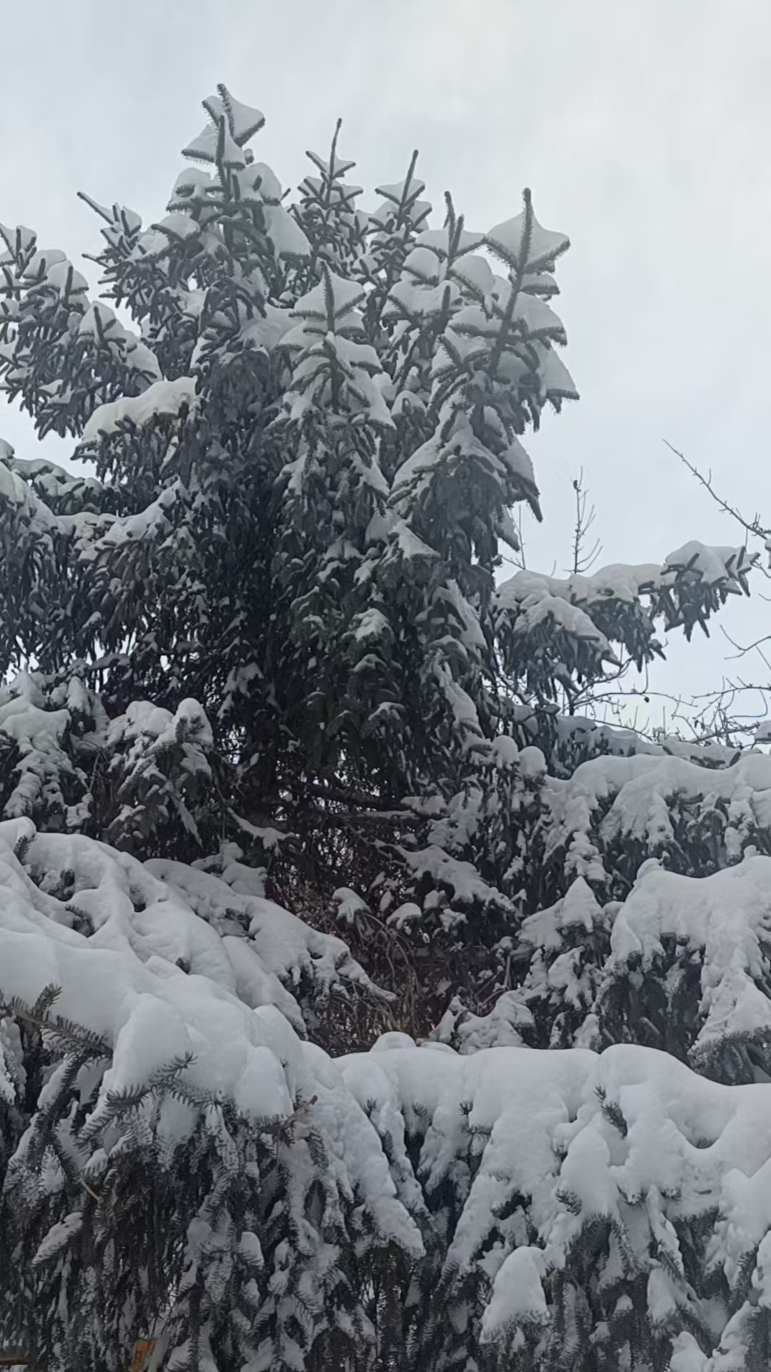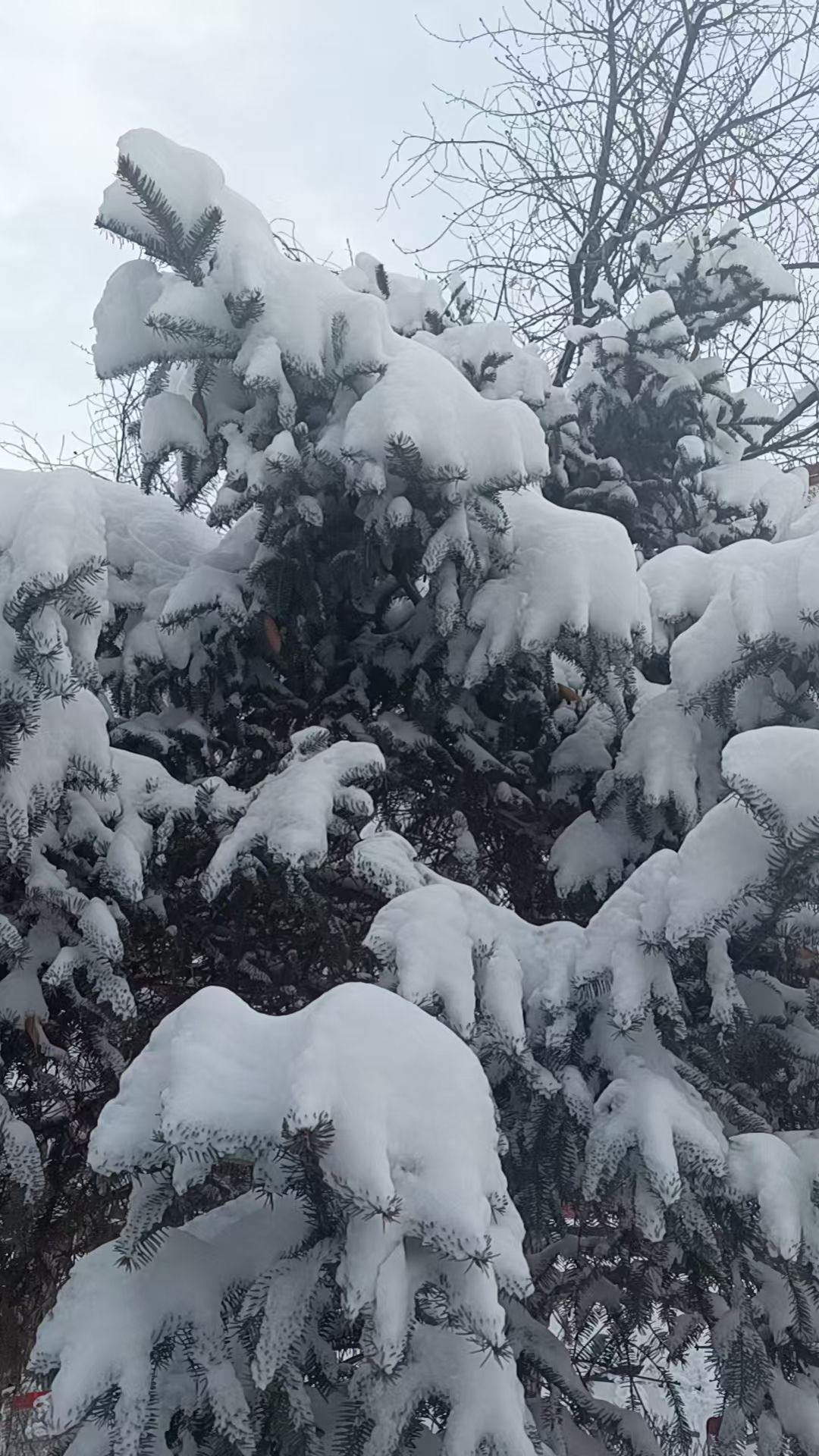 烏魯木齊的雪,從來都帶著北疆獨有的磅礴氣。好友發來的兩張照片里,松柏被雪裹得嚴實,深綠的針葉從厚厚的雪層里探出來,像被白棉絮裹住的墨玉簪。那些松柏生在城市的邊角,不是精心修剪的園林樹,而是野氣十足的北疆原生松,枝干遒勁地向天空伸展,雪落在枝椏上,不是輕飄飄的覆蓋,而是沉甸甸的堆疊,雪團墜著松枝微微彎曲,卻又始終不肯折斷,像北疆人骨子里的堅韌。