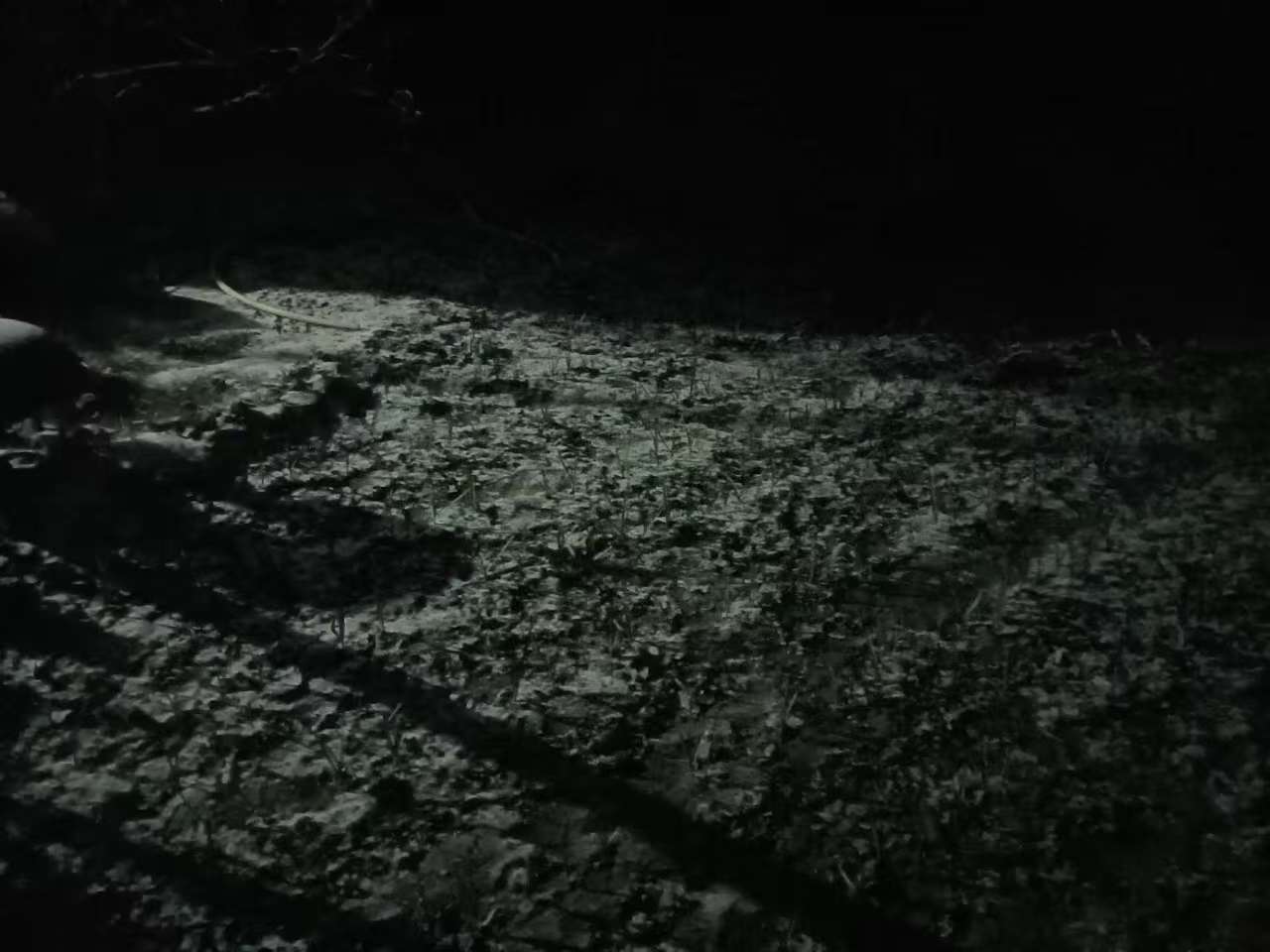 而菏澤牡丹區黃河岸邊的雪,是另一番溫柔模樣。第三張照片里,夜色籠罩著河岸,雪薄薄地覆在地面上,沒有北疆雪的厚重,卻帶著黃河的溫潤。我站在黃河大堤上,伸手接住一片雪花,它輕飄飄地落在掌心,沒等我看清形狀,就化成了一滴水珠,順著指縫滑落。黃河岸邊的雪,像是被黃河的水汽浸潤過,雪粒細碎如鹽,落在衰草上,給枯黃的草莖裹了層白霜;落在堤岸的泥土上,融成淺淺的濕痕,混著黃河的泥土氣息,聞起來有股子煙火味。