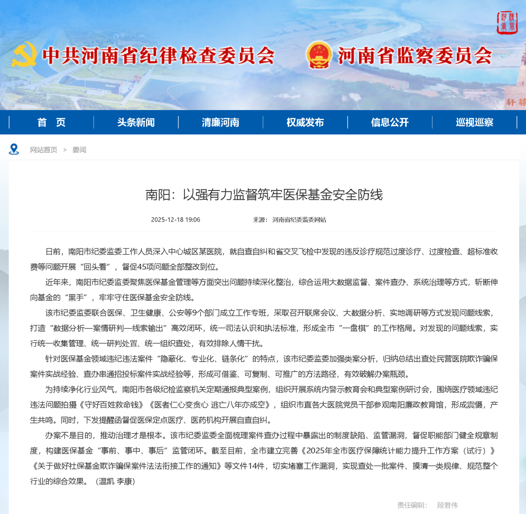 南陽:以強有力監督筑牢醫?;鸢踩谰€