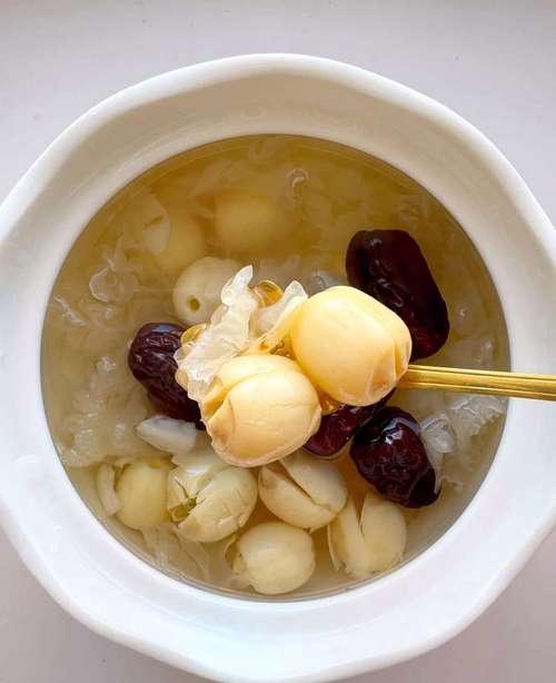 大火煮開后轉小火慢熬40分鐘,最后加入泡軟的百合和冰糖,再煮10分鐘即可;