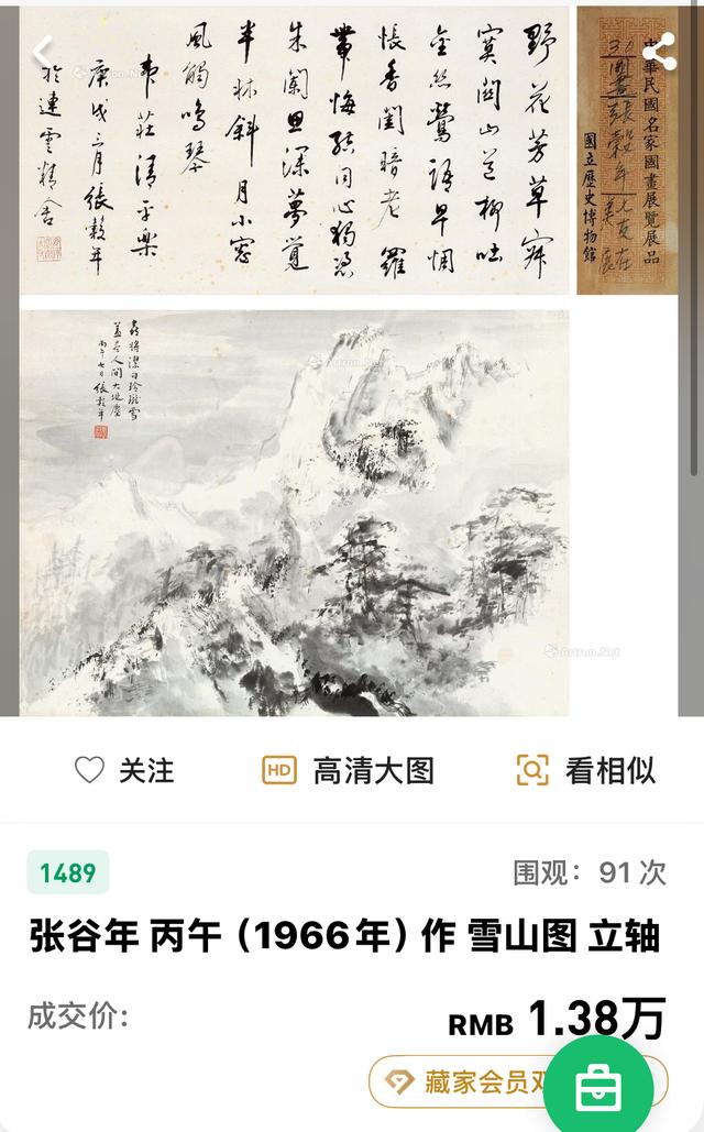張谷年的山水畫藝術以其獨特的風格和精湛的技藝而聞名。他的作品注重于山水景色的再現,以細膩的線條勾勒和獨特的筆法呈現出山水的壯麗和悠遠。他善于運用水墨和色彩,給予作品深厚的藝術內涵和情感。